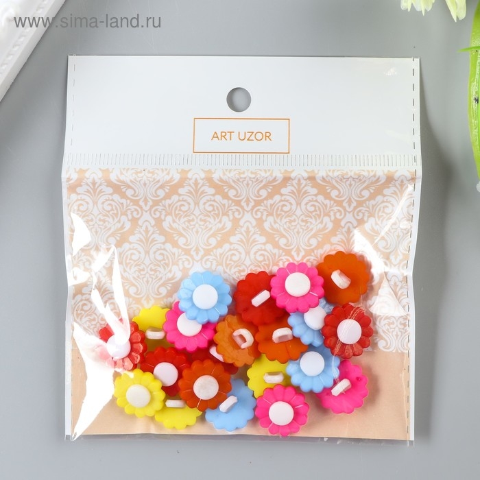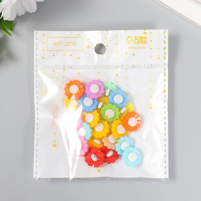 Набор пуговиц декоративных пластик "Цветочки яркие" (набор 22 шт) 1,5х1,5 см