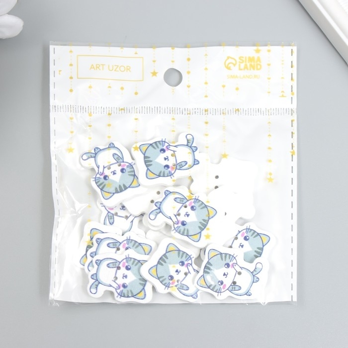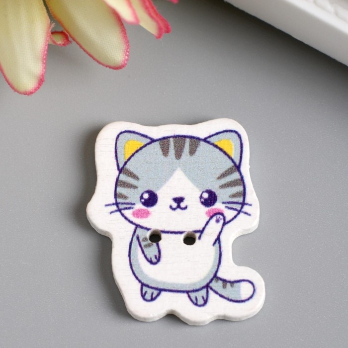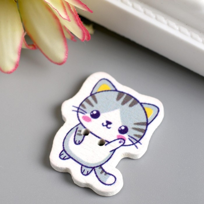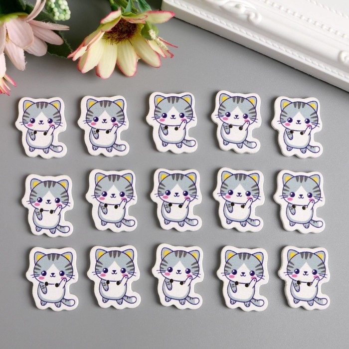 Набор пуговиц для творчества дерево "Котёночек - Привет!" набор 15 шт 2,7х2,3 см