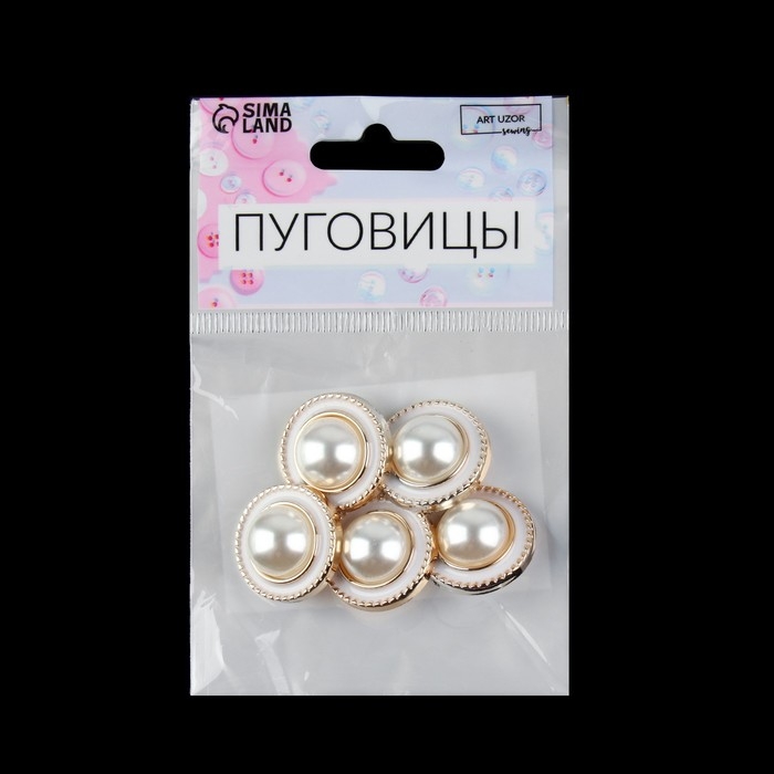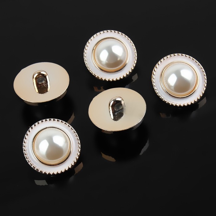 Набор пуговиц на ножке, d = 21,5 мм, 5 шт, цвет жемчужный/золотой