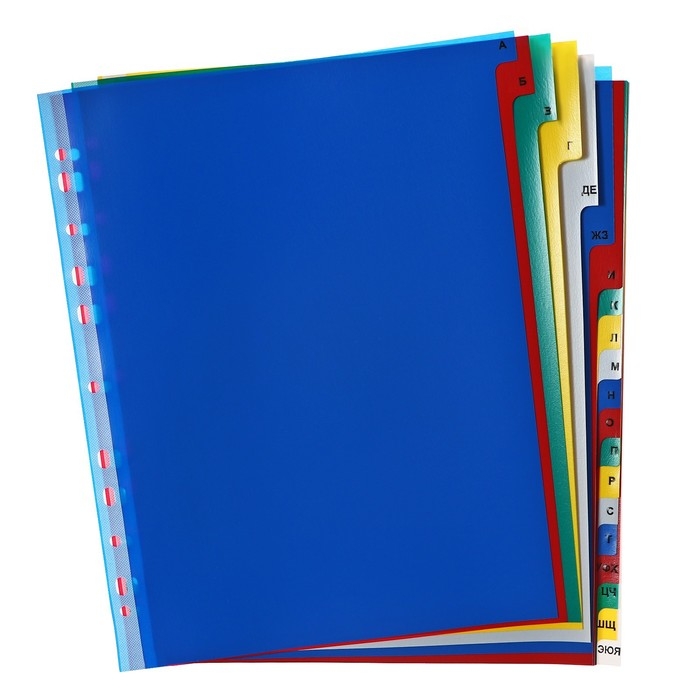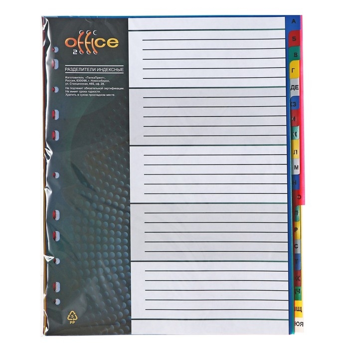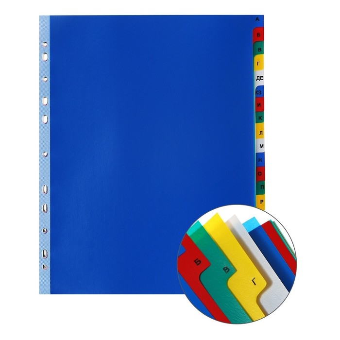 Набор разделителей листов А4+ Office-2000, алфавитные А-Я, 20 листов, цветные, пластик 140 мкм