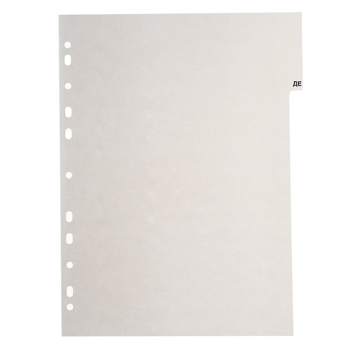 Разделители помогут Вам комфортно сортировать, архивировать и систематизировать любые документы внутри папок разного вида. Они выполнены из прочного пластика и имеют универсальную перфорацию для подшивки в папки.