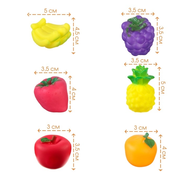Набор резиновых игрушек для ванны «Фрукты», 6 шт, виды МИКС, Крошка Я