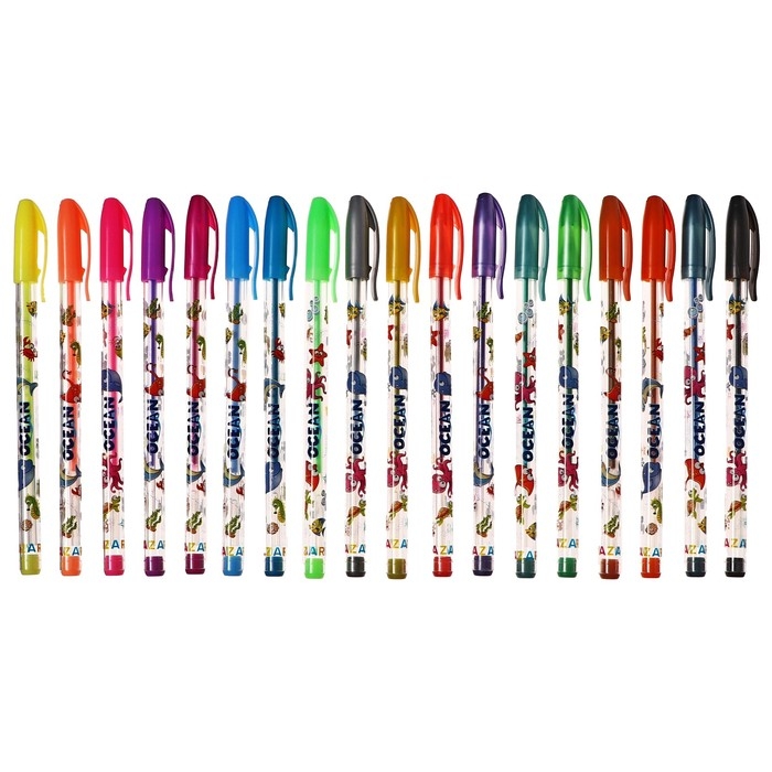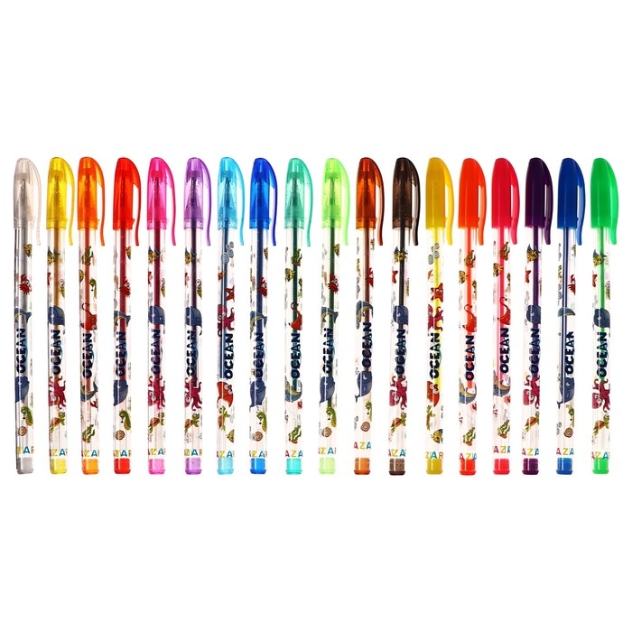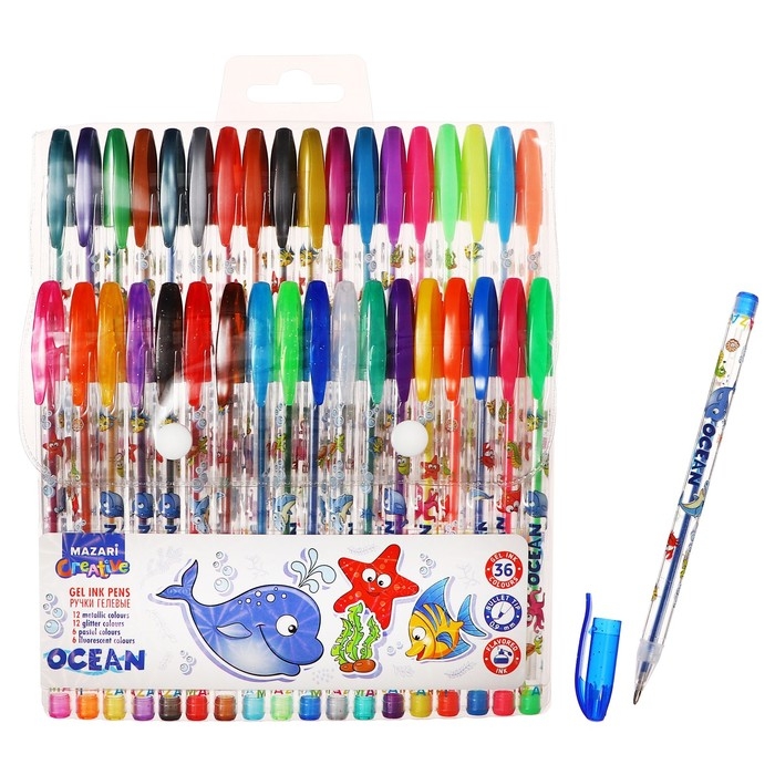 Набор ручек гелевых 36 цветов (12 с блестками + 6 флуоресцентных + 12 металлик + 6 пастельных) Mazari "OCEAN", ароматизированные, пулевидный пишущий узел 0,9 мм, пластиковый цветной корпус
