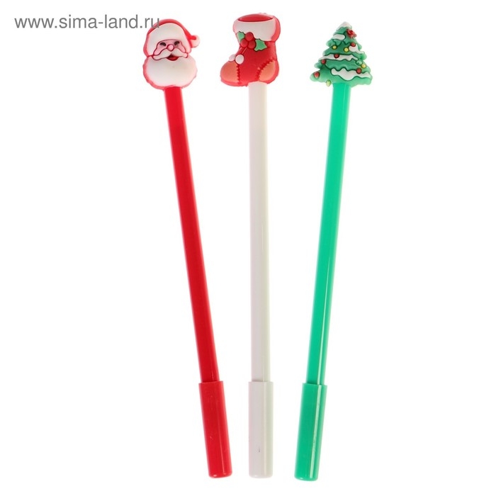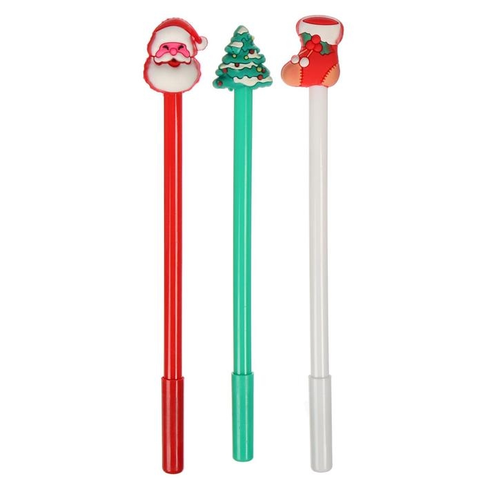 Набор ручек гелевых - прикол, 3 штуки "Дед Мороз/Елка/Носок для подарков", в пакете