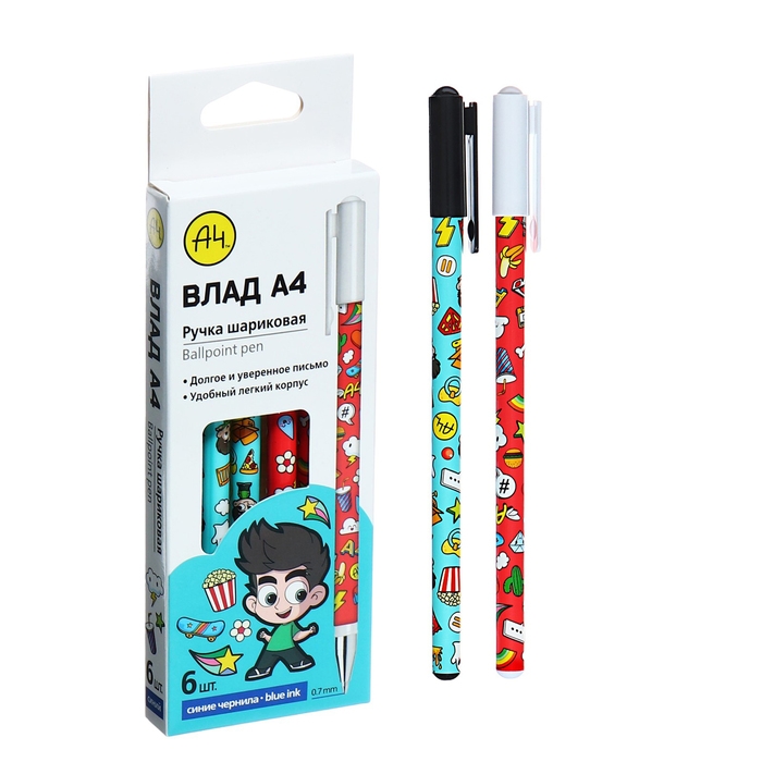 Набор ручек шариковых 6 шт, «Влад А4», 0.7мм, синие чернила