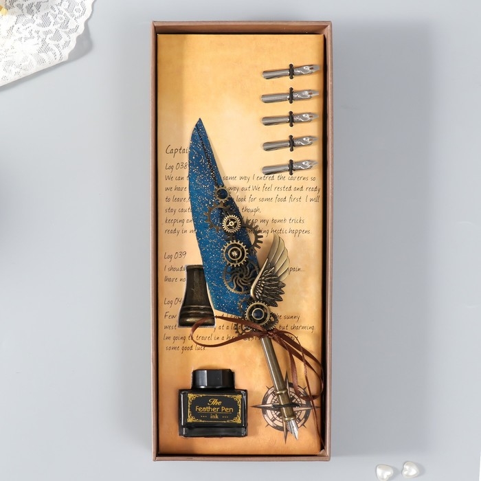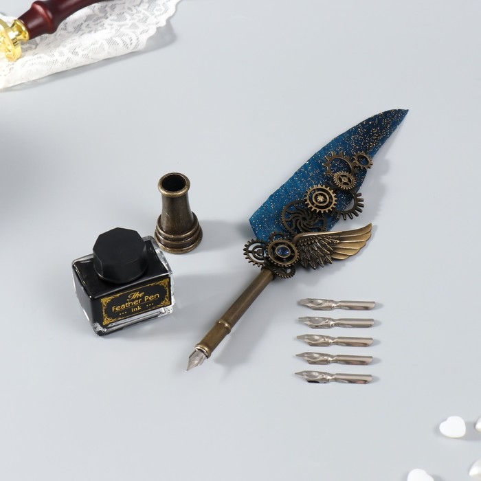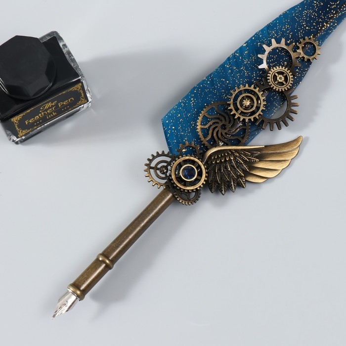Набор ручка перьевая со сменными перьями+подставка+чернила "Механизмы" 26х12х4 см