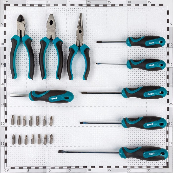 Набор ручного инструмента Bort BTK-24, сталь CrV, 24 предмета в чемодане