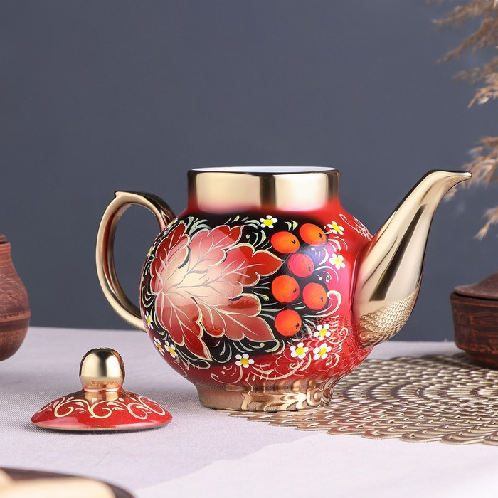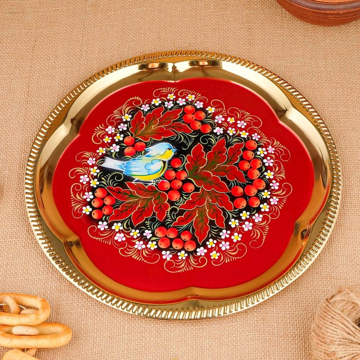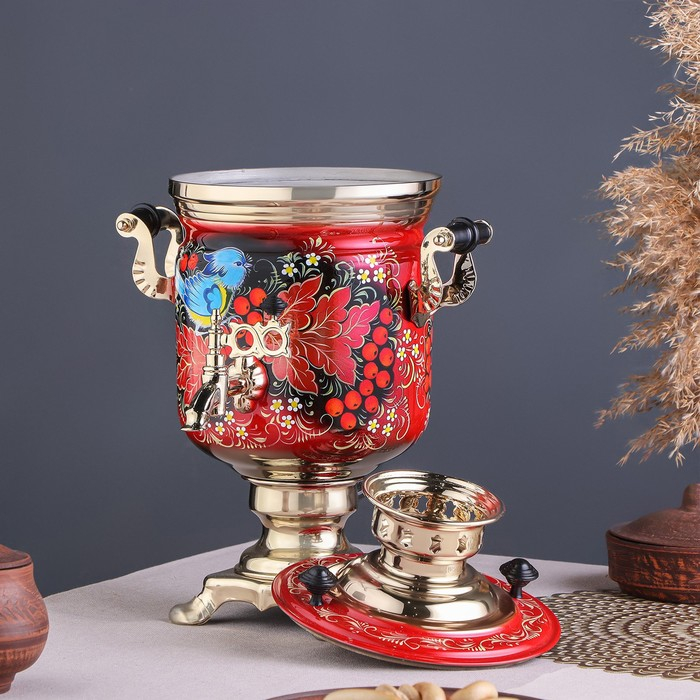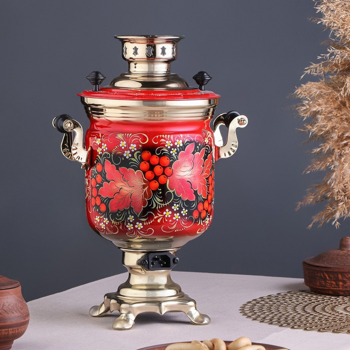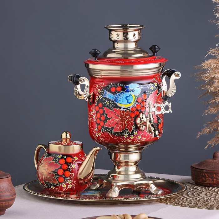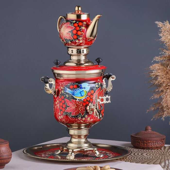 Набор «Рябина», 3 предмета, самовар 3 л, заварочный чайник 0,7 л, поднос