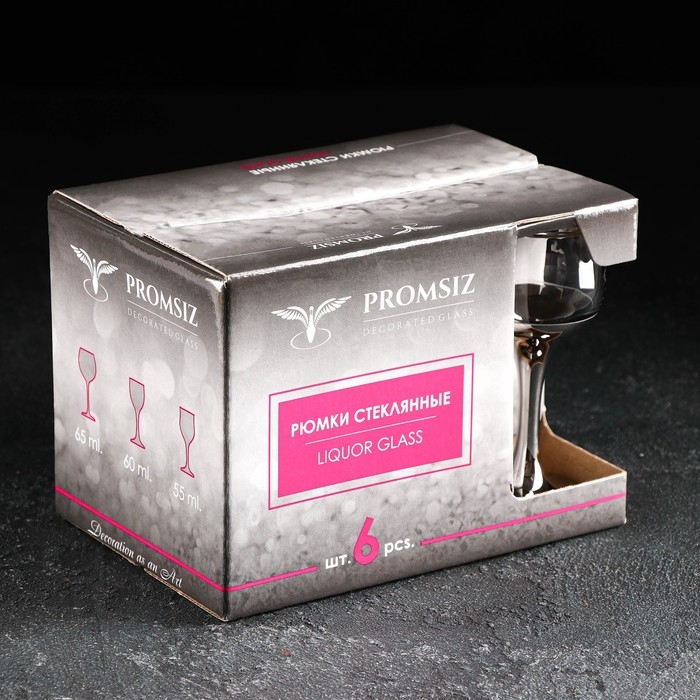 Набор стеклянных бокалов для ликёра Bistro, 60 мл, 6 шт