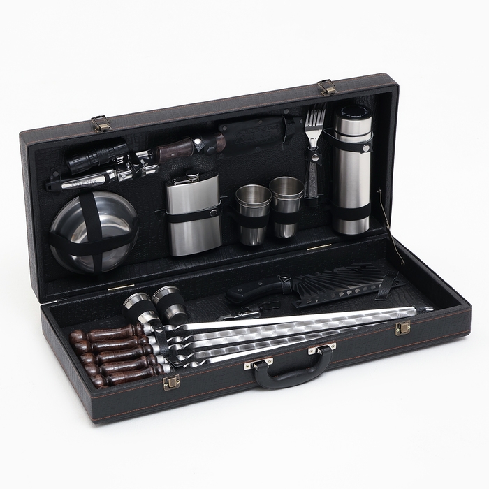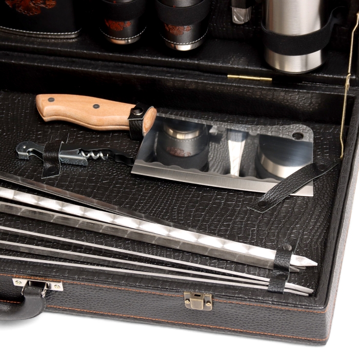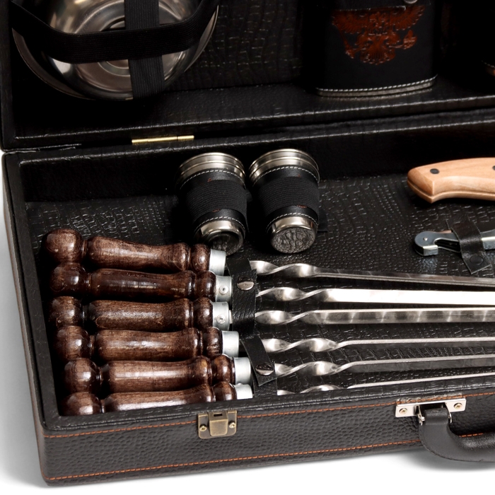 Набор с шампурами подарочный "Буйвол" №30, в кейсе из эко-кожи