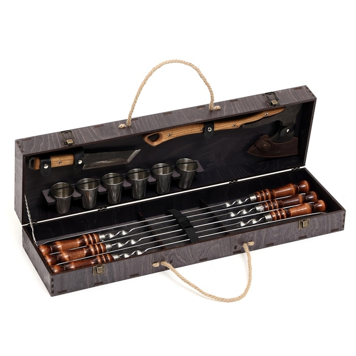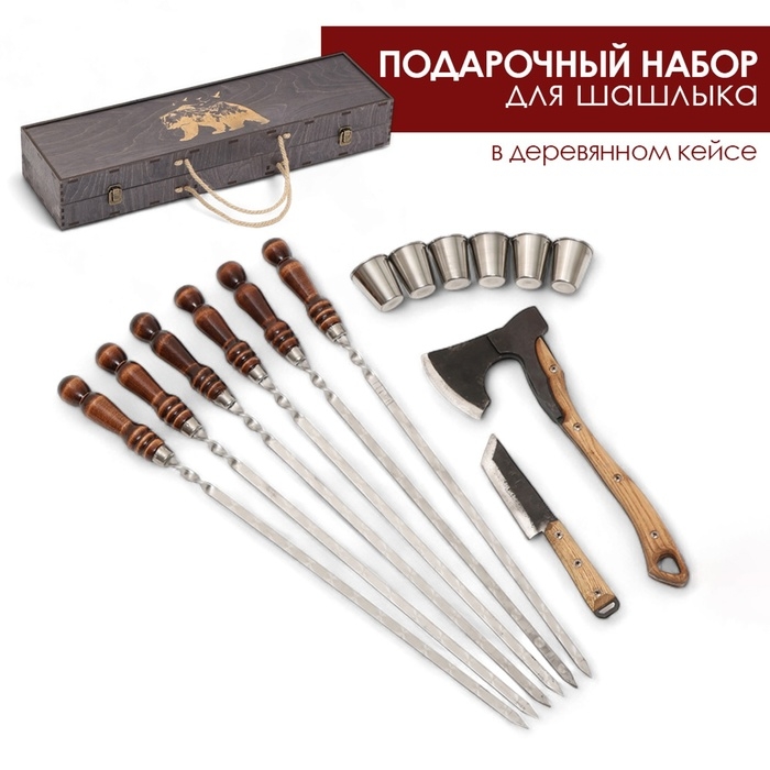 Набор с шампурами подарочный "Медведь" с топором, в кейсе