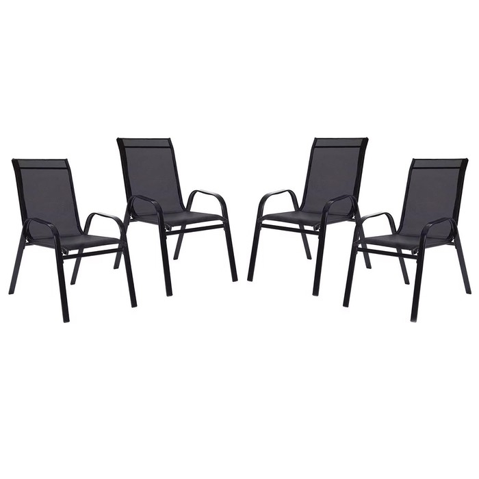 Набор садовой мебели: 4 стула, черный, 70 x 54 x 89 см, нагрузка до 120 кг, текстилен