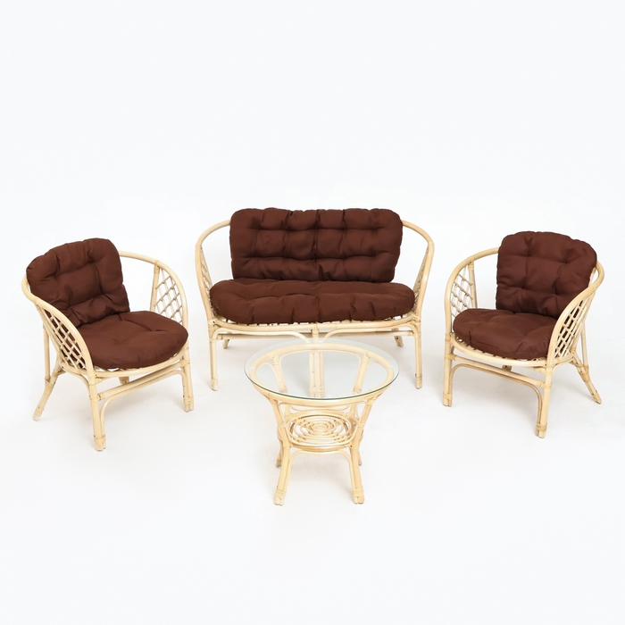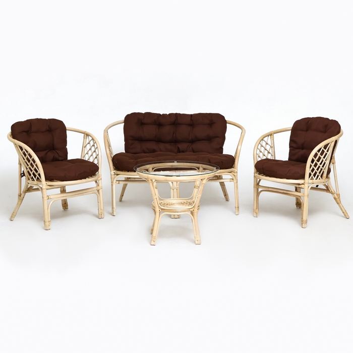Набор садовой мебели "Bagama": 2 кресла, 1 диван, 1 стол, ротанг светлый, подушки коричневые