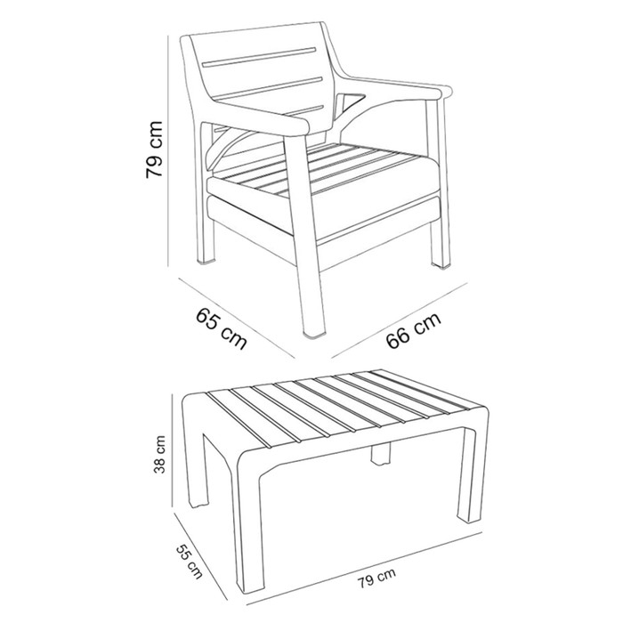 В комплект входят два удобных кресла и стол, выполненные из качественных материалов. Кресла имеют прочный каркас и мягкое сиденье, а мягкие подушки обеспечивают непревзойденный уровень комфорта.