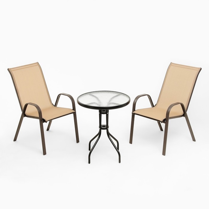 Набор садовой мебели: стол + 2 стула, бежевый, текстилен