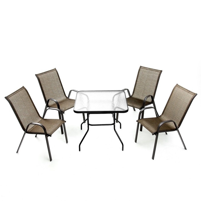Набор садовой мебели: Стол прямоугольный и 4 стула коричневого цвета, нагрузка до 120 кг