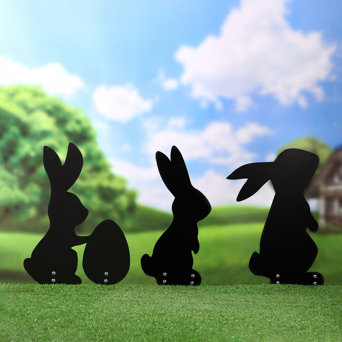 Набор садовых фигур "Зайки на лужайке" 3шт, 22х30см/13х30см/20х30см, черные