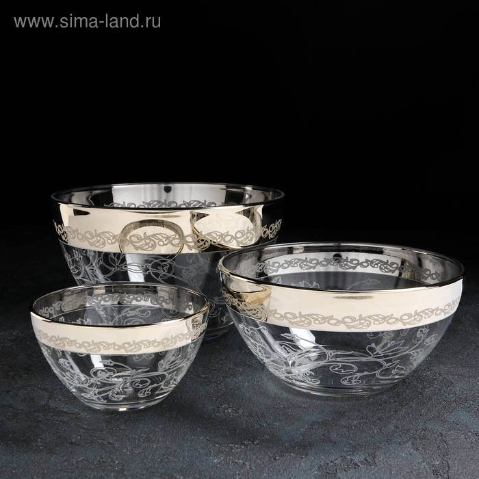Набор салатников «Флора», 3 предмета: 0,25 л, 0,8 л, 1,75 л, с гравировкой, цвет напыления золотой