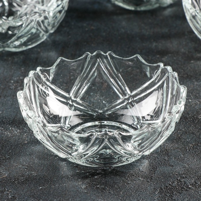 Салатник стеклянный «Вулкан», 680 мл, 16×16×7,5 см, цвет голубой