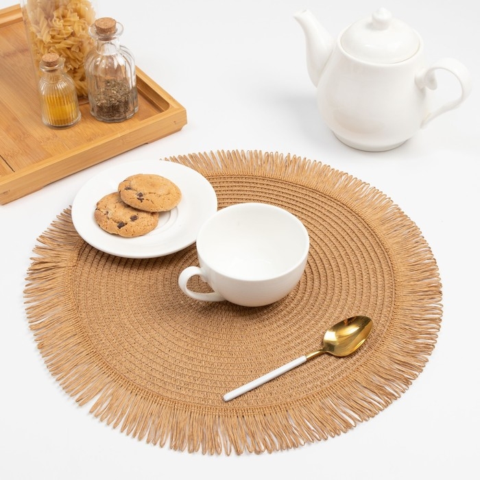 Набор салфеток 2 шт.Доляна "Бохо",цв.бежевый, d 38 см