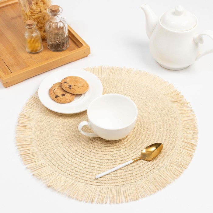 Набор салфеток 2 шт.Доляна "Бохо",цв.молочный, d 38 см