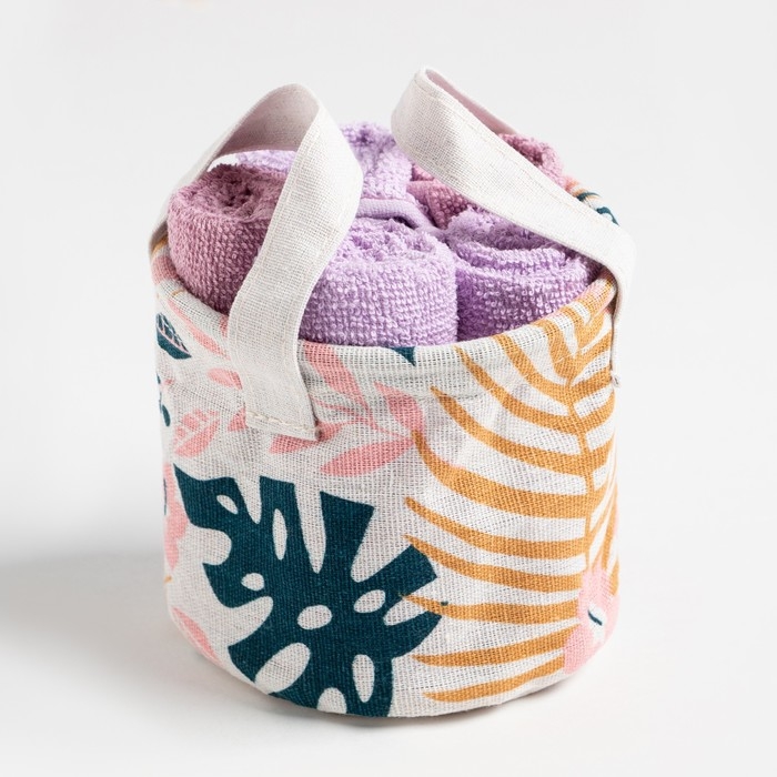 Набор салфеток махровых универсальных в корзинке Этель "Тропики" 30х30см-5шт,100% хлопок,340г/м2