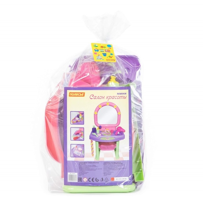 О собственном салоне красоты девочки мечтают с детства. Осуществить мечту поможет игрушечный набор, здесь всё как у взрослых: большой туалетный столик с зеркалом и полочками, фен с фрикционным механизмом, расчёска, гребешок, розовые флакончики, тени, помада и яркие бусы.