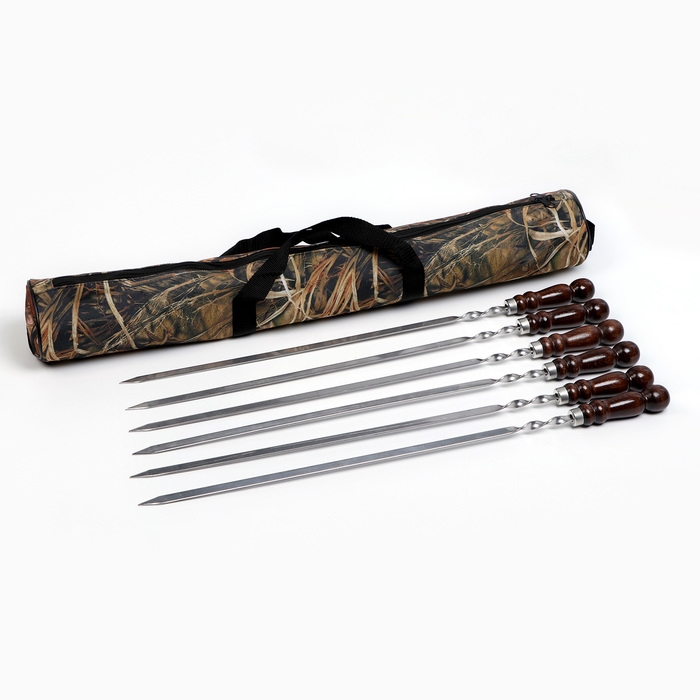 Набор шампуров "Пикник" 6 шампуров, 60 х 1 см, рабочая часть - 45 см, сталь - 2.5 мм, камуфл