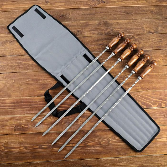 Набор шампуров "Ташкент" в чехле, 6 шт, рабочая часть - 50 см, серый