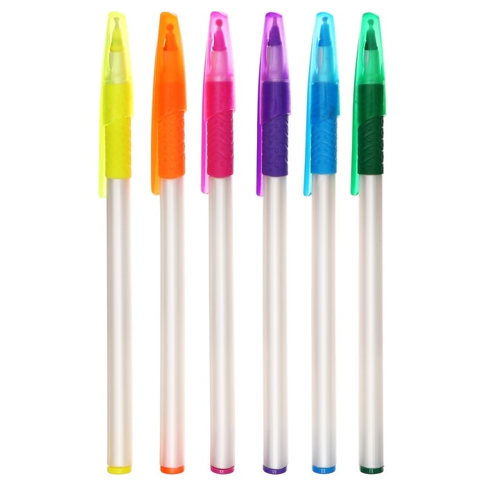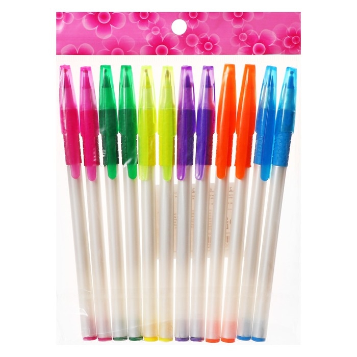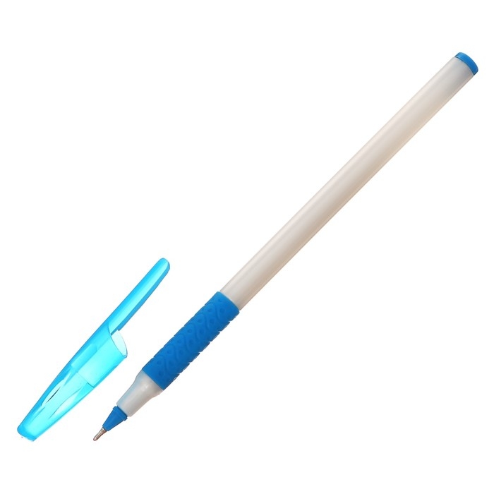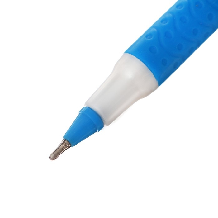 Набор шариковых ручек 12 штук, 0,7мм, корпус белый с резиновым держателем, чернила синие, МИКС