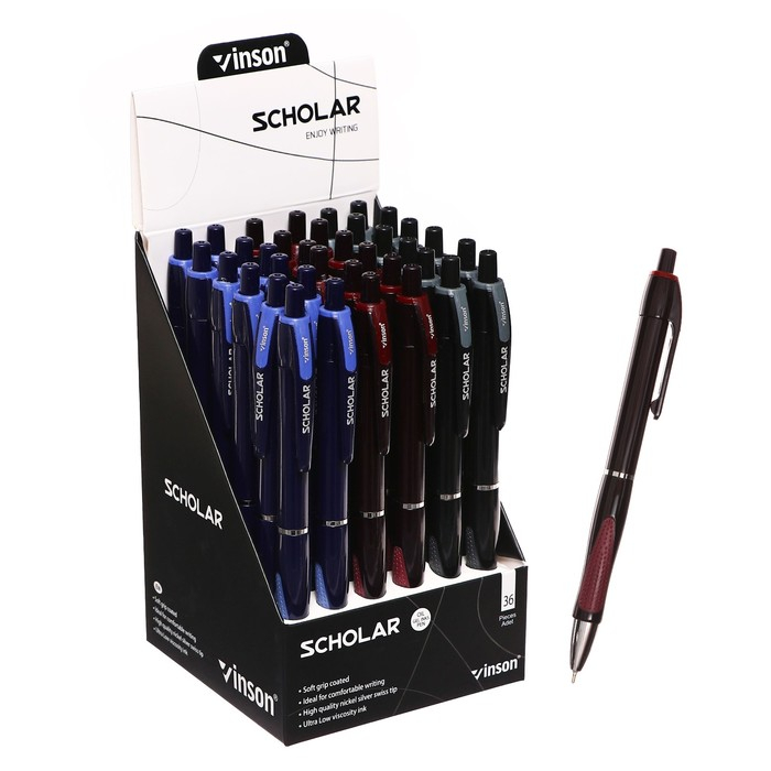 Набор шариковых ручек 36 штук, 0.5 мм, автоматические Vinson, стержень масляный синий, с резиновым держателем