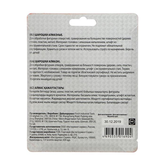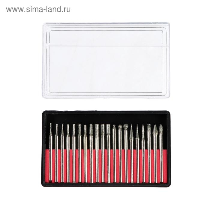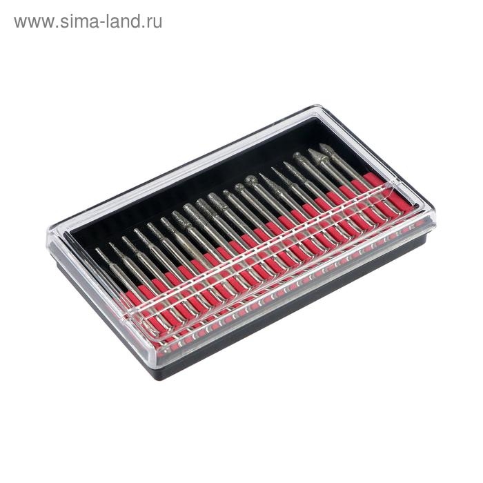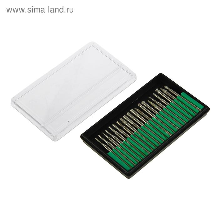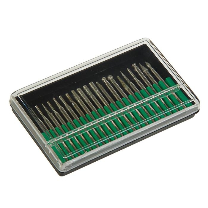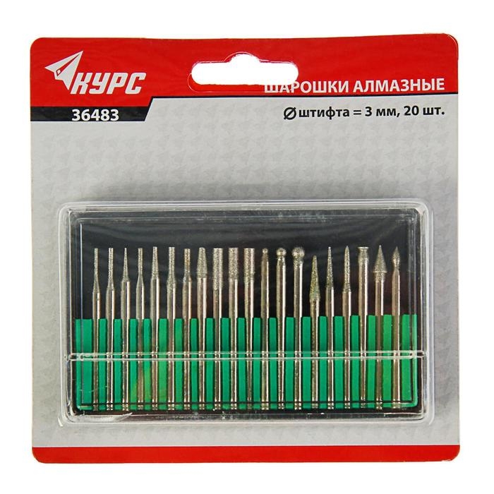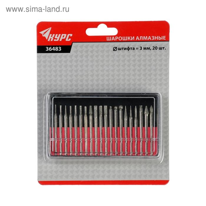 Набор шарошек "КУРС", усиленная сталь с алмазным напылением, штифт 3 мм, 20 шт.