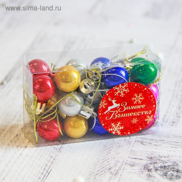 Набор шаров пластик d-1,7 см, 24 шт "Глянец" микс