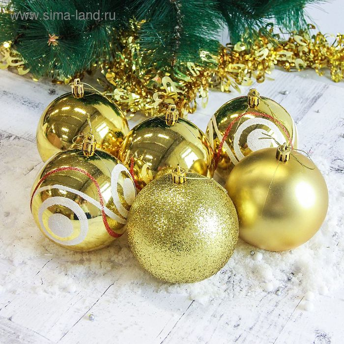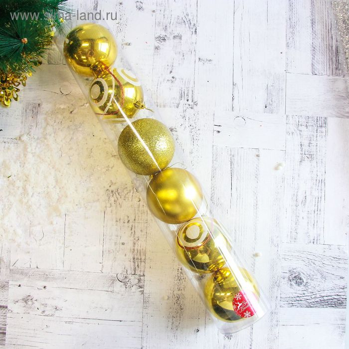 Набор шаров пластик d-10 см, 6 шт "Круги" золото