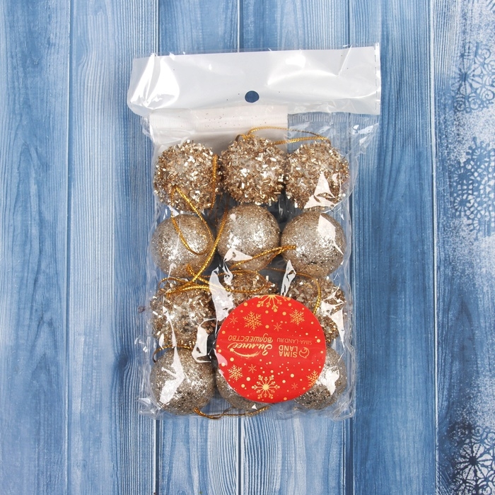 Набор шаров пластик d-3 см, 12 шт "Золотая посыпка"
