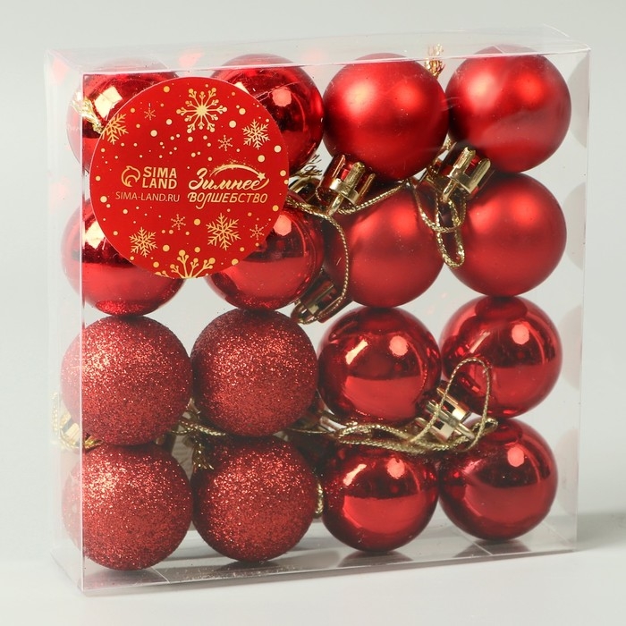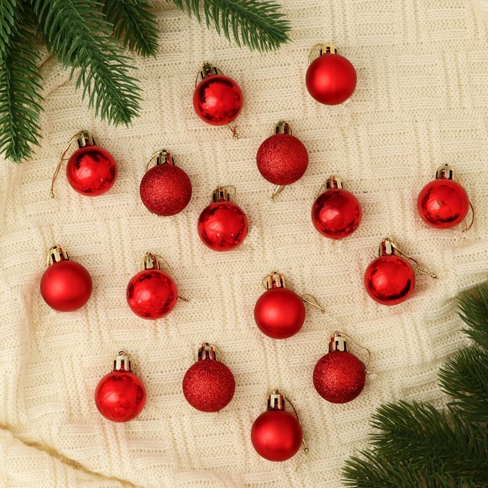 Набор шаров пластик d-3 см, 16 шт "Праздничный переполох" красный