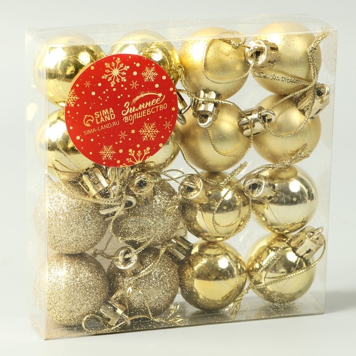 Набор шаров пластик d-3 см, 16 шт "Праздничный переполох" золото