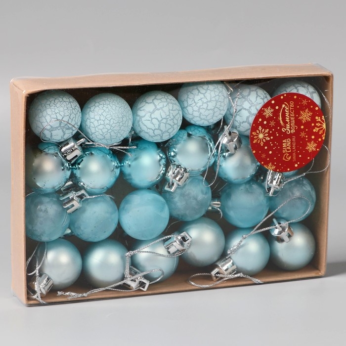 Набор шаров пластик d-3 см, 24 шт "Традиция" треск, голубой