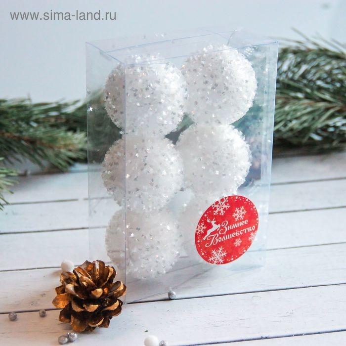 Набор шаров пластик d-4,5 см, 6 шт "Пушинка" белый
