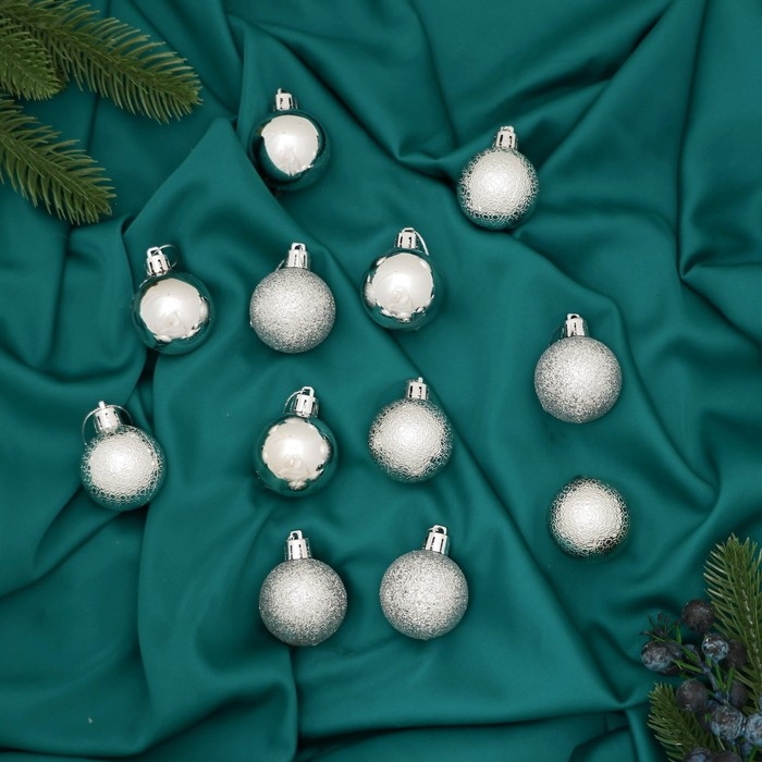 Набор шаров пластик d-4 см, 12 шт "Анданте" серебро