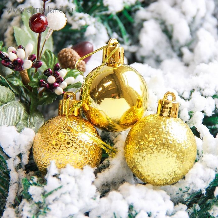 Набор шаров пластик d-4 см, 12 шт "Анданте" золото