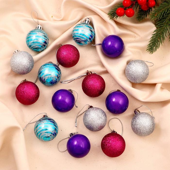 Набор шаров пластик d-4 см, 16 шт "Космо полосы" микс
