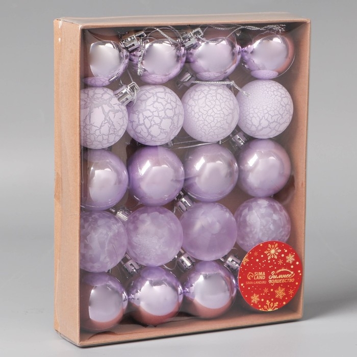 Набор шаров пластик d-4 см, 20 шт "Традиция" треск, сиреневый