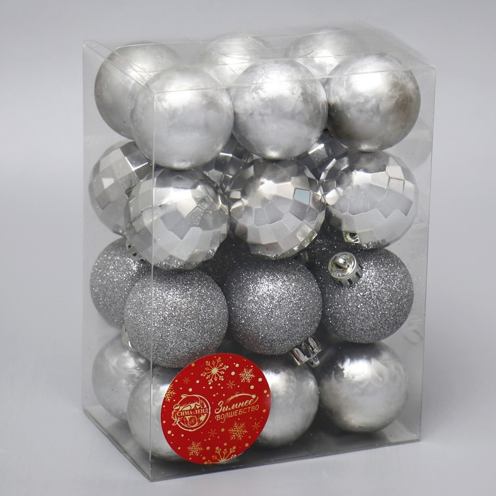 Набор шаров пластик d-4 см, 24 шт "Диско ассорти" серебро