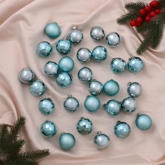 Набор шаров пластик d-4 см, 30 шт "Диско ассорти" зелёный
