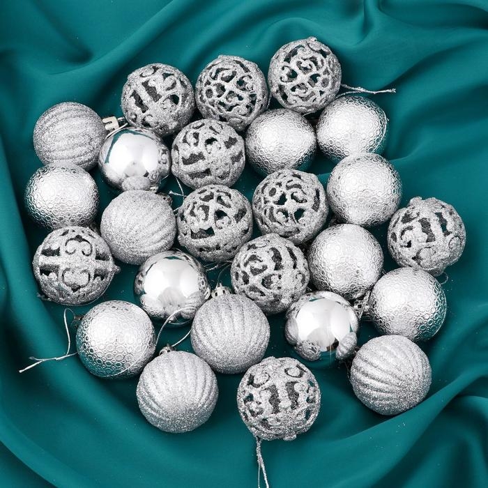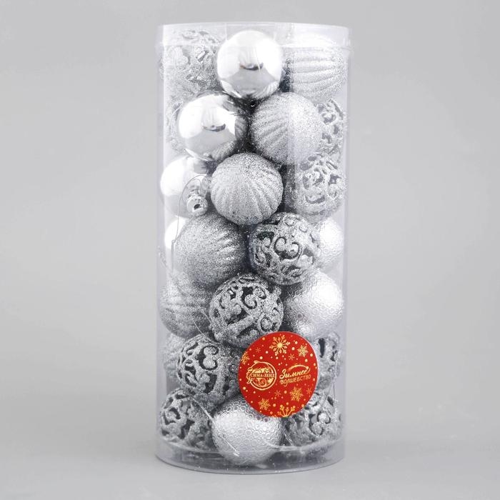 Набор шаров пластик d-4 см, 35 шт "Феерия" серебро