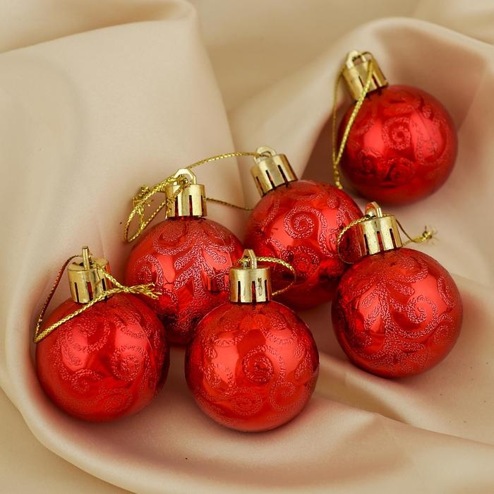 Набор шаров пластик d-4 см, 6 шт "Морозная зима" красный