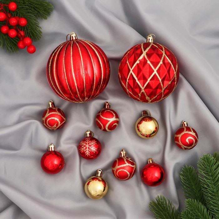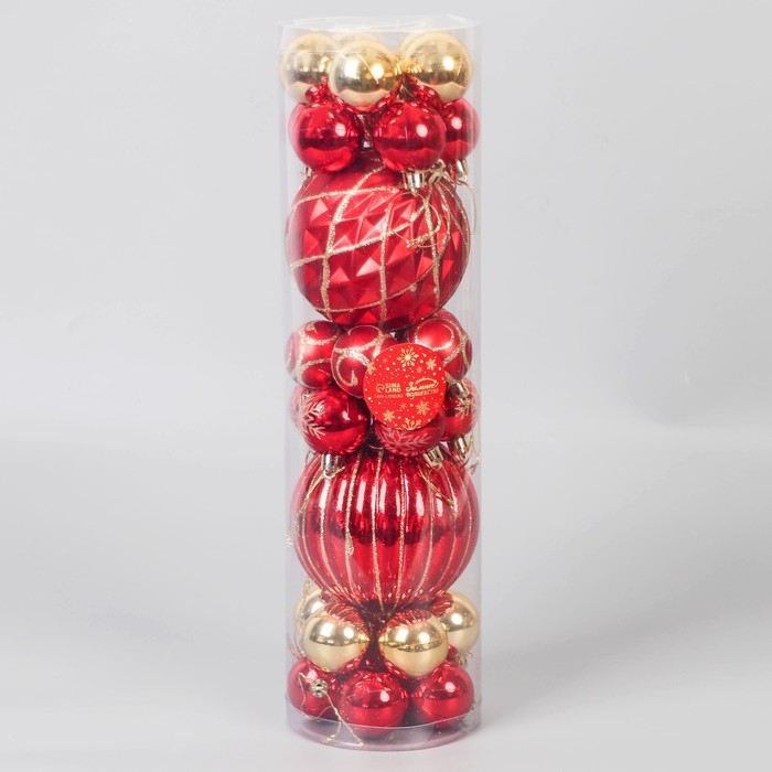 Набор шаров пластик d-4 и 10 см, 32 шт "Карнавал" красный золото