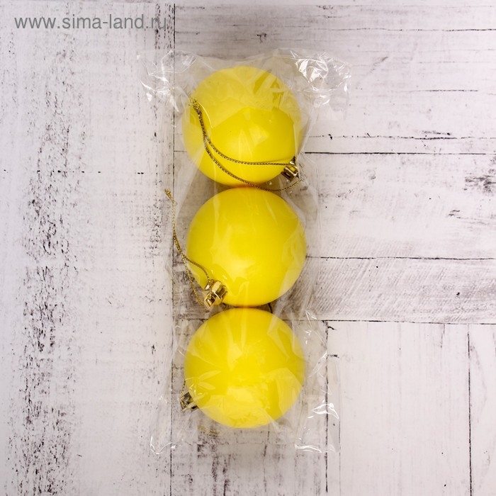 Набор шаров пластик d-5,5 см, 3 шт "Матовый" жёлтый