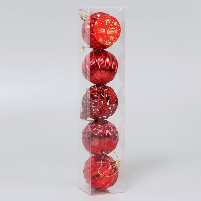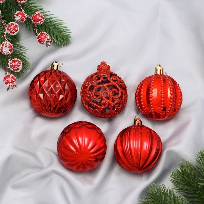 Набор шаров пластик d-5,5 см, 5 шт "Карнавал" ассорти, красный